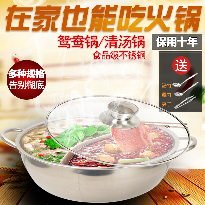 不锈钢火锅盆加厚清汤锅干锅鸳鸯锅火锅家用电磁炉专用火锅锅商用