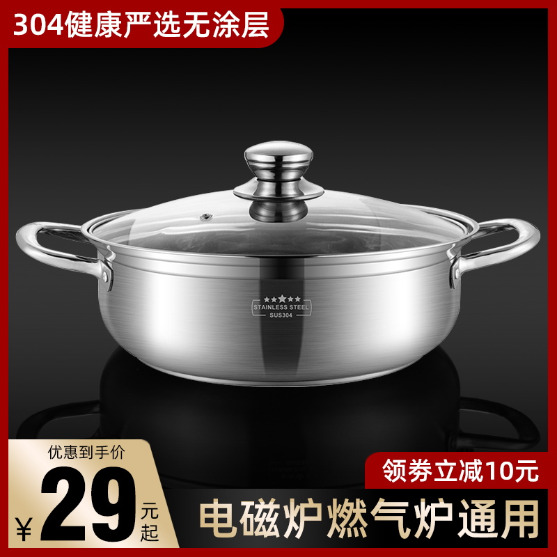 汤锅304不锈钢锅家用电磁炉火锅锅专用锅煤气灶加厚锅具通用煮锅