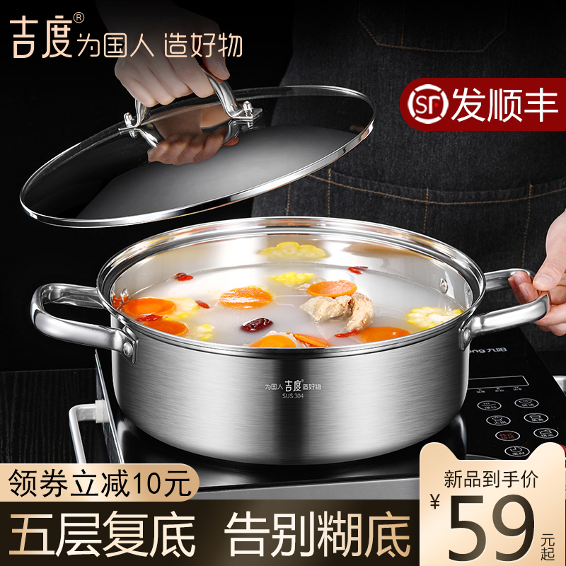 吉度汤锅304不锈钢锅 加厚家用电磁炉火锅锅专用锅煤气灶通用煮锅