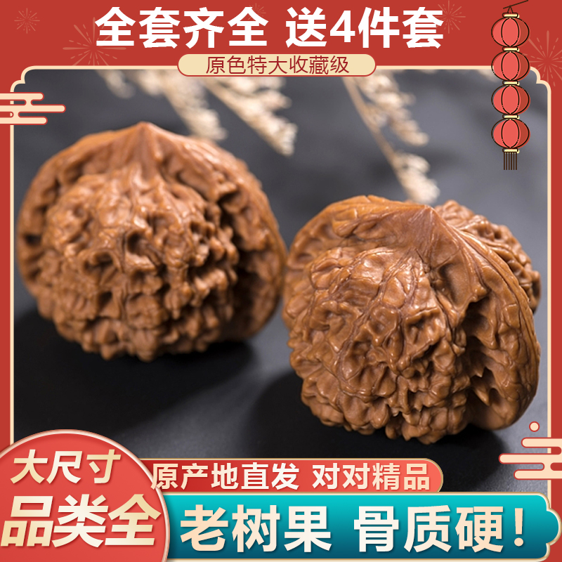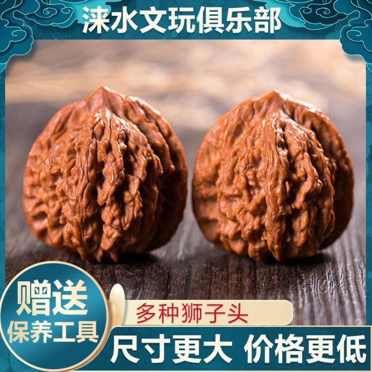 天然木质涞水文玩核桃全品四座楼狮子头45特大粗筋闷尖把玩麻核