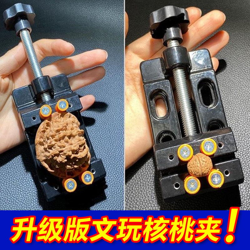 升级文玩核桃台钳固定器雕刻打底清理抛光台虎钳铝合金平口钳家用