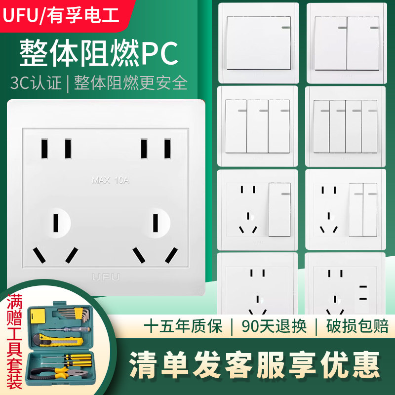 UFU/有孚电工开关插座套装卧室双控开关带开关插座多控十孔插座白