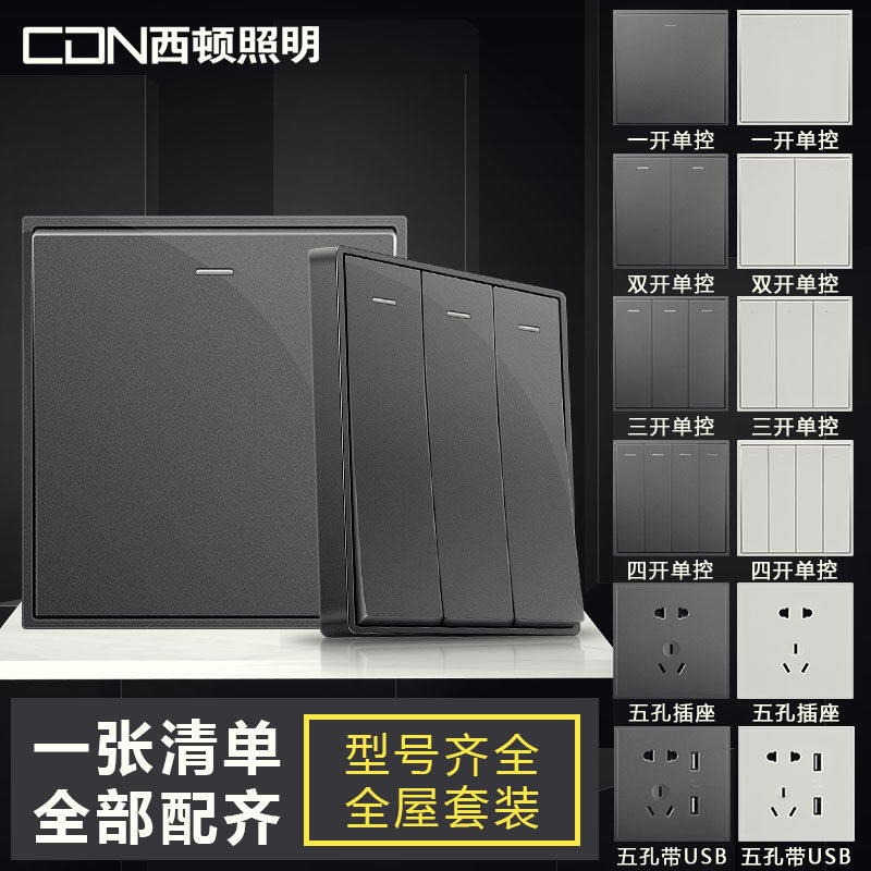 西顿照明电工开关插座电源面板墙壁五孔一开单控二开开关插座套装