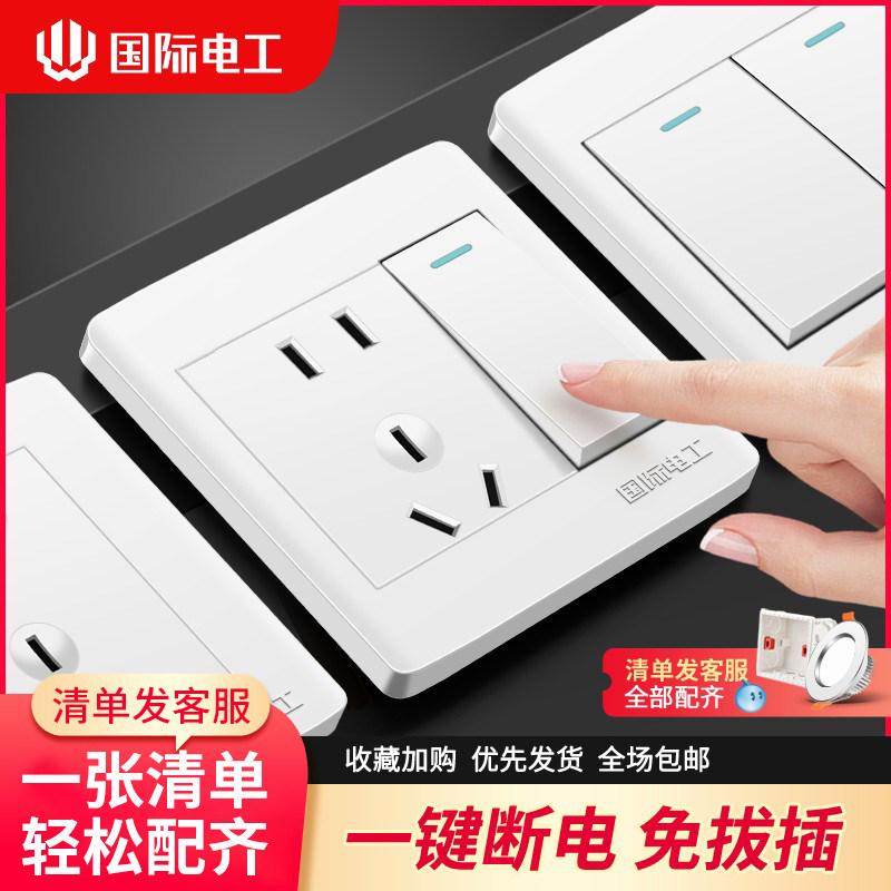 国际电工86型白色开关插座家用套装暗装墙壁一开五孔电源面板多孔