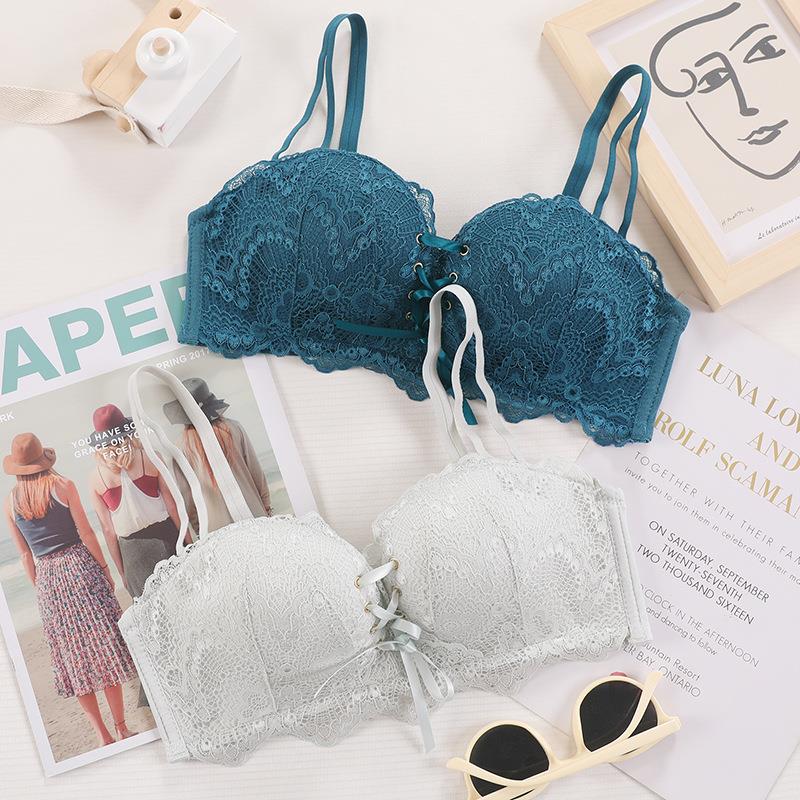 日系绑带蕾丝内衣女薄款无钢圈小胸聚拢上托防下垂甜美萝莉文胸罩