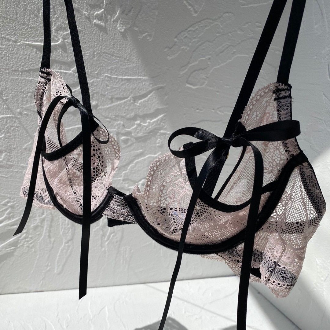 维多利亚法式韵味小众设计纯欲性感镂空内衣蕾丝薄透绑带文胸套装