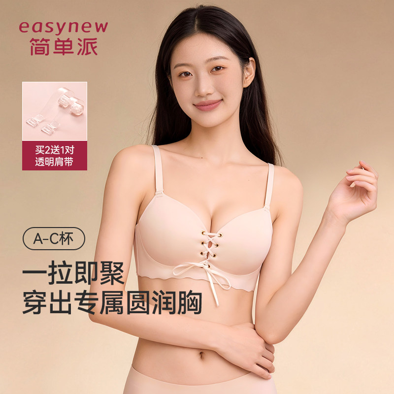 简单派易拉聚拢文胸前扣绑带小胸显大收副乳防下垂无痕性感内衣女