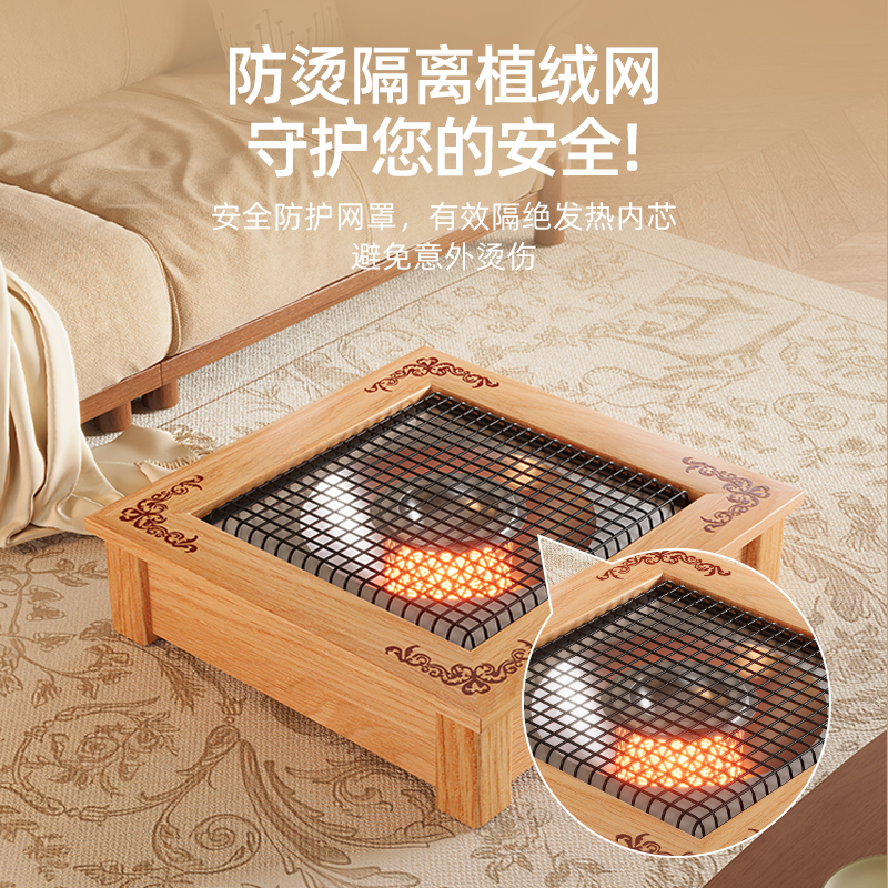 实木取暖家用烤火器冬季节能办公室烘脚神器暖脚炉客厅卧室电火桶