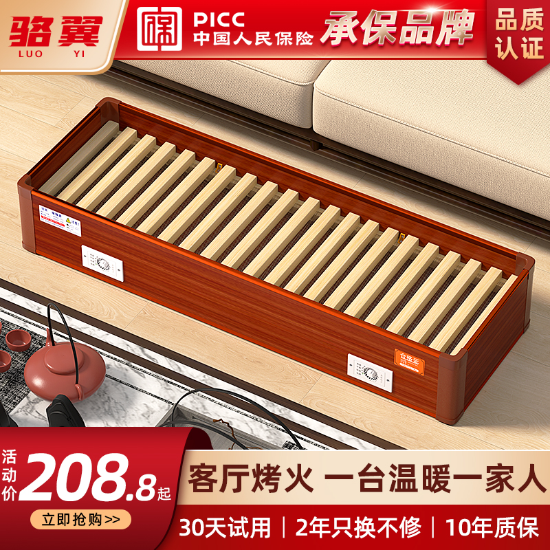 烤火炉长方形家用暖脚炉烤脚炉子电火炉家用实木烤脚取暖器电暖炉
