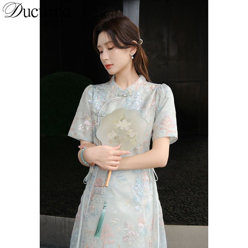 Ducurno高端大品牌时尚搭配女装2025夏季新款轻奢显瘦收腰连衣裙
