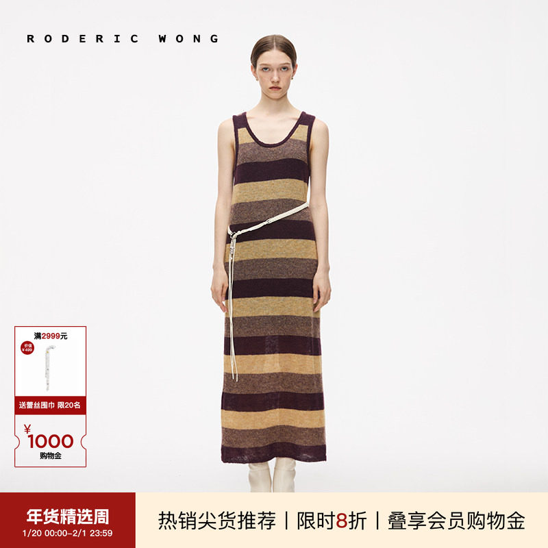 [古力娜扎同款]RODERIC WONG秋季条纹拼色针织背心连衣裙淡人穿搭