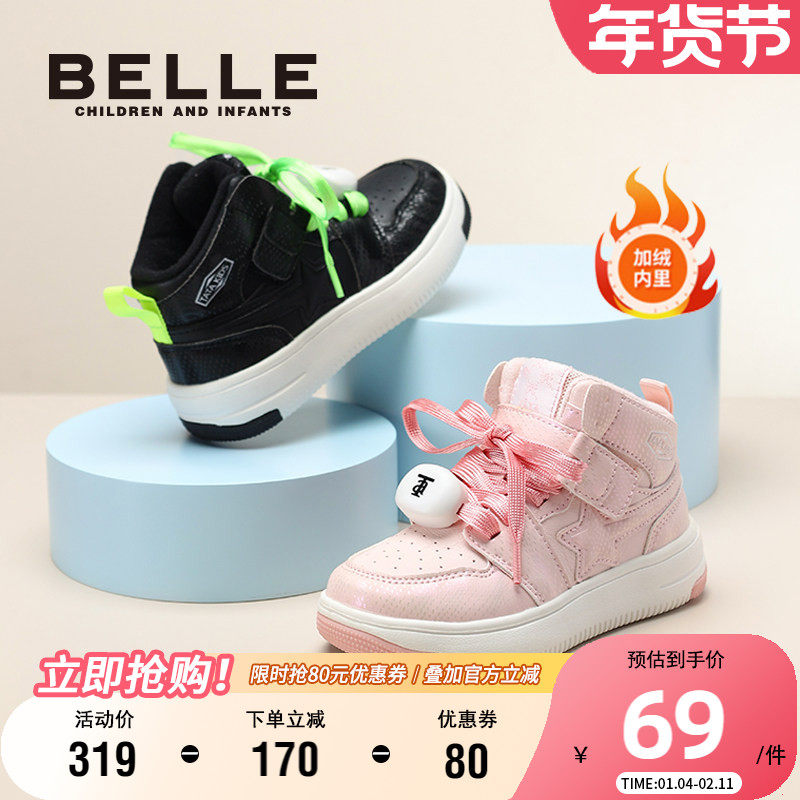 ABCkids童鞋女童鞋子加绒板鞋冬季儿童冬鞋秋冬高帮二棉运动鞋