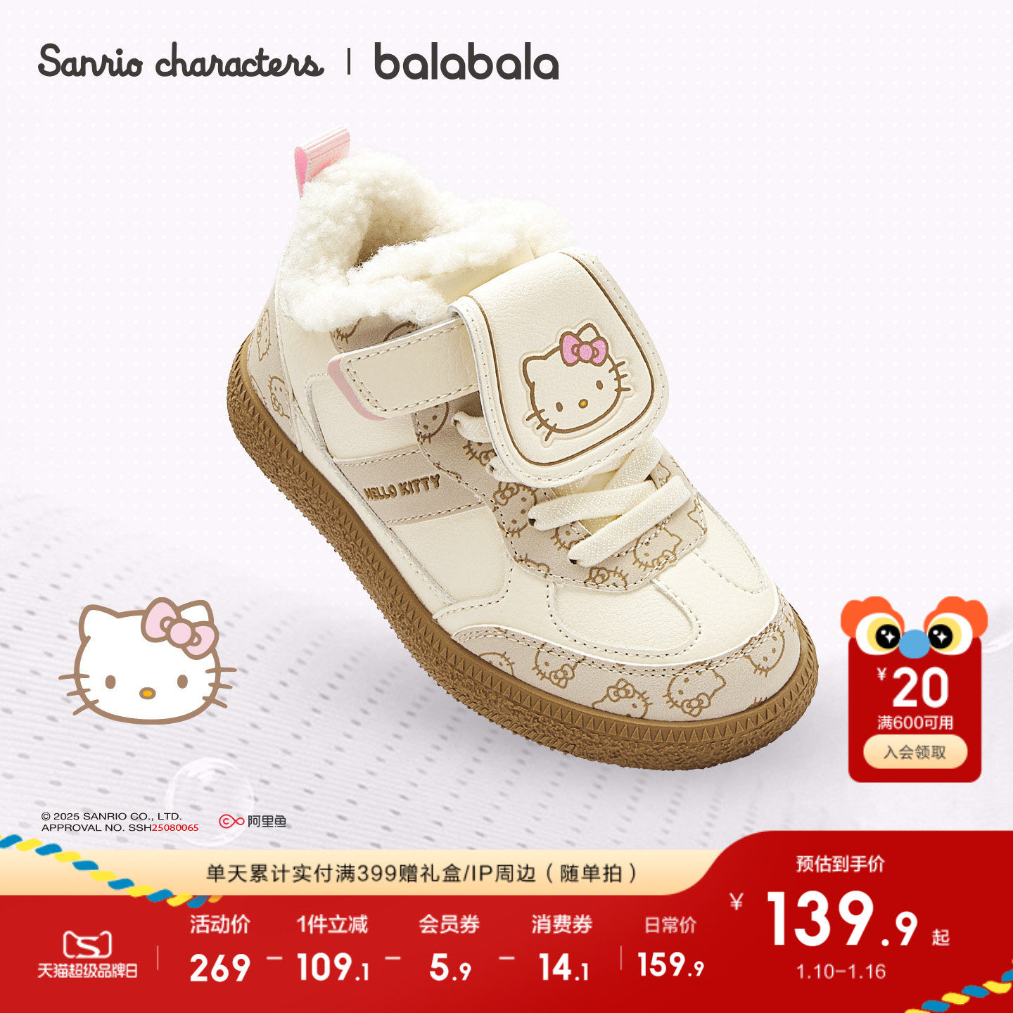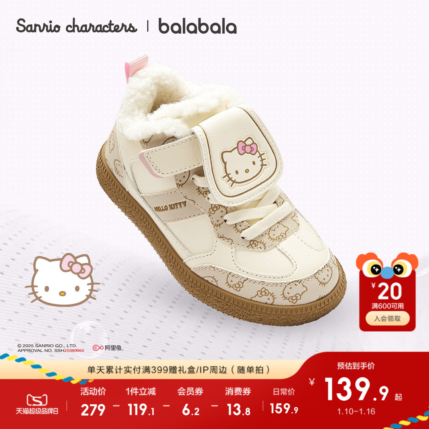 hellokitty巴拉巴拉童鞋儿童运动鞋女童2025冬季老爹鞋库洛米鞋子