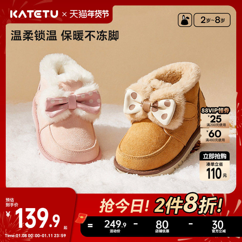 卡特兔儿童棉鞋男童冬季新款宝宝加绒加厚软底防滑女童鞋子雪地靴