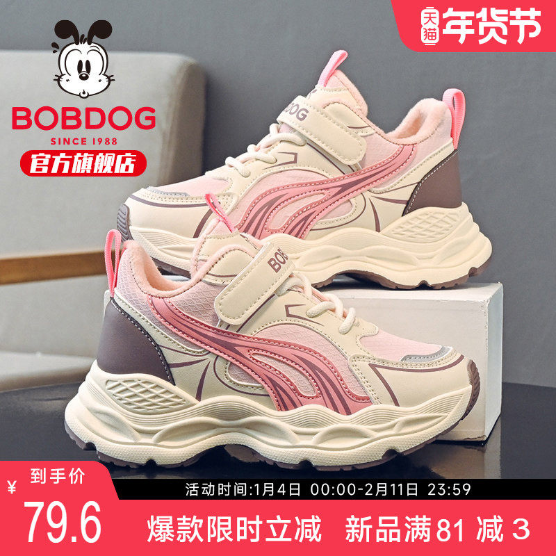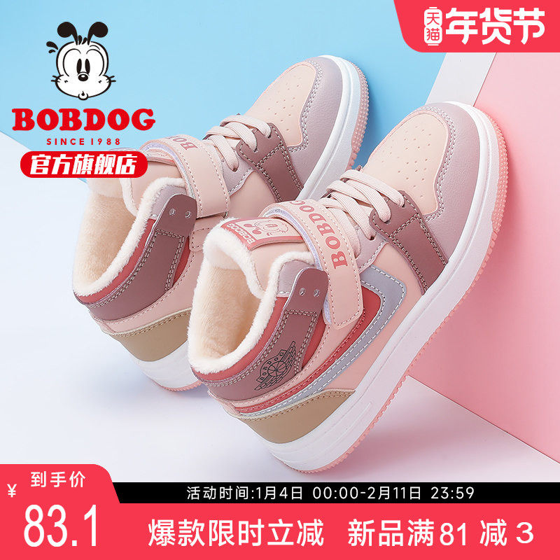 巴布豆童鞋女童鞋子秋冬2025新款女孩加绒二棉鞋运动女宝儿童板鞋