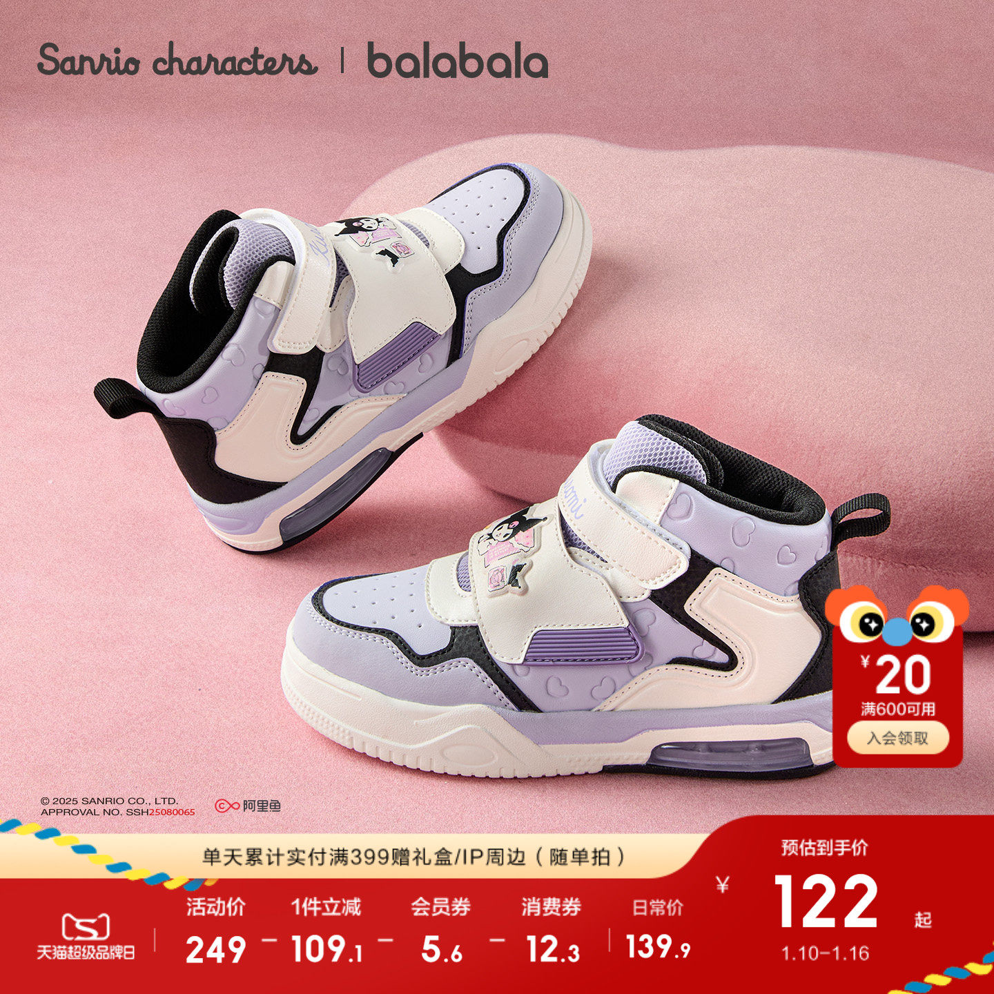 三丽鸥巴拉巴拉童鞋儿童板鞋女童鞋子高帮2025春秋新款运动鞋甜美
