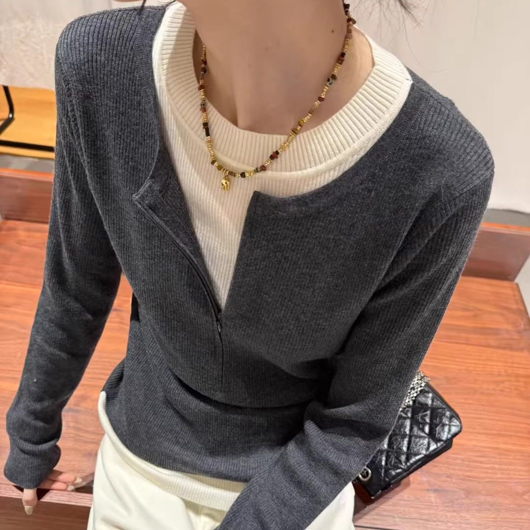 欧洲站2025冬装新款欧货巨好穿半开拉链假两件美丽诺羊毛打底衫女