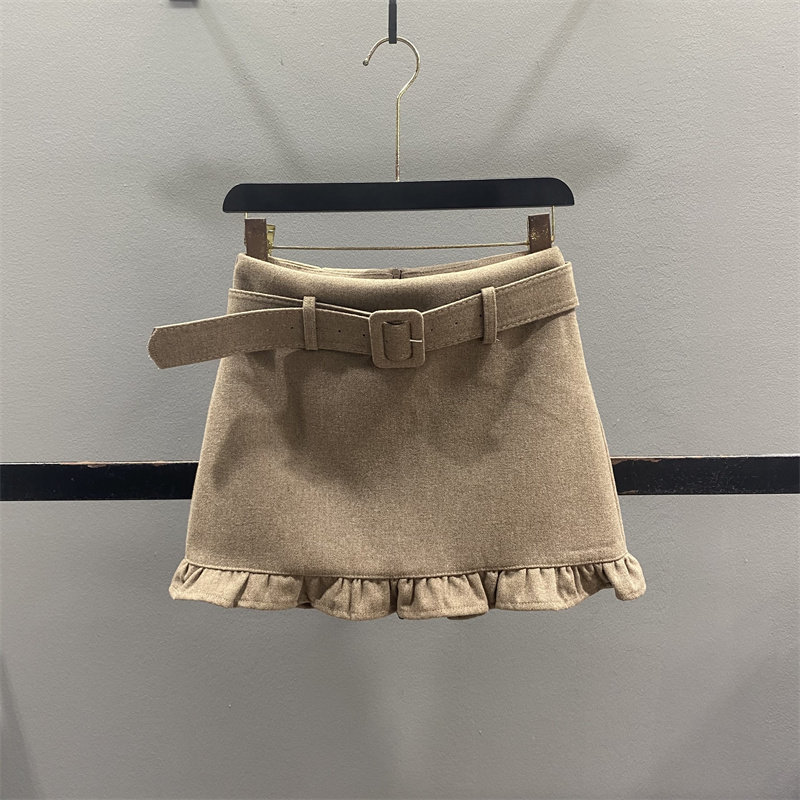 复古木耳边毛呢半身裙女2025秋冬新款减龄显瘦辣妹包臀裙A字短裙