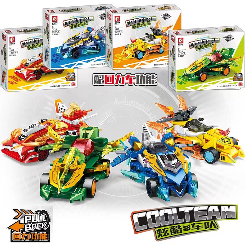 森宝积木炫酷回力战车队名跑车总动员赛车模型组装积木玩具礼物6+