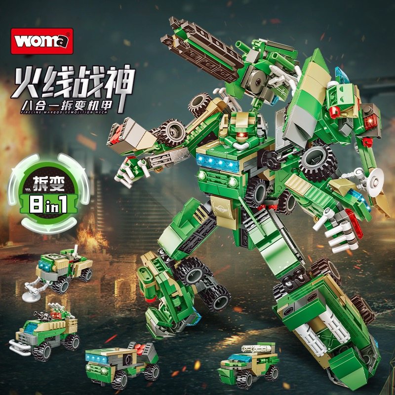 沃马C0840军事装备导弹装甲车坦克8合体火线战神机甲组装积木玩具