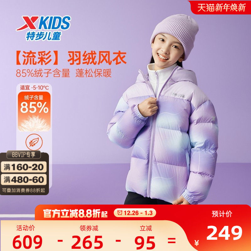 特步童装女童厚款羽绒服儿童拼接外套2025秋冬新款大童防寒服冬装