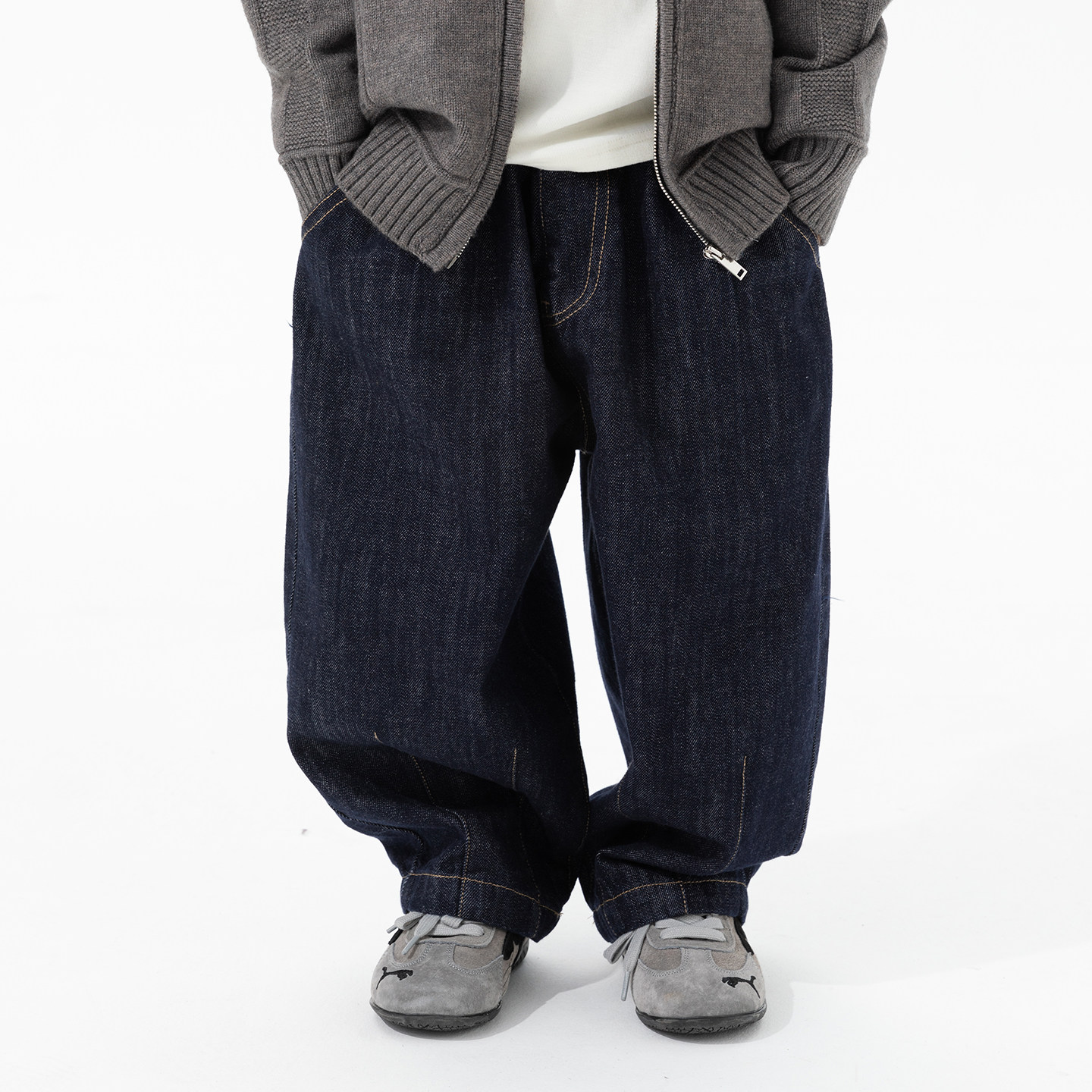 米修叻男童秋冬牛仔裤加绒加厚复古弯刀长裤儿童洋气外穿休闲裤子
