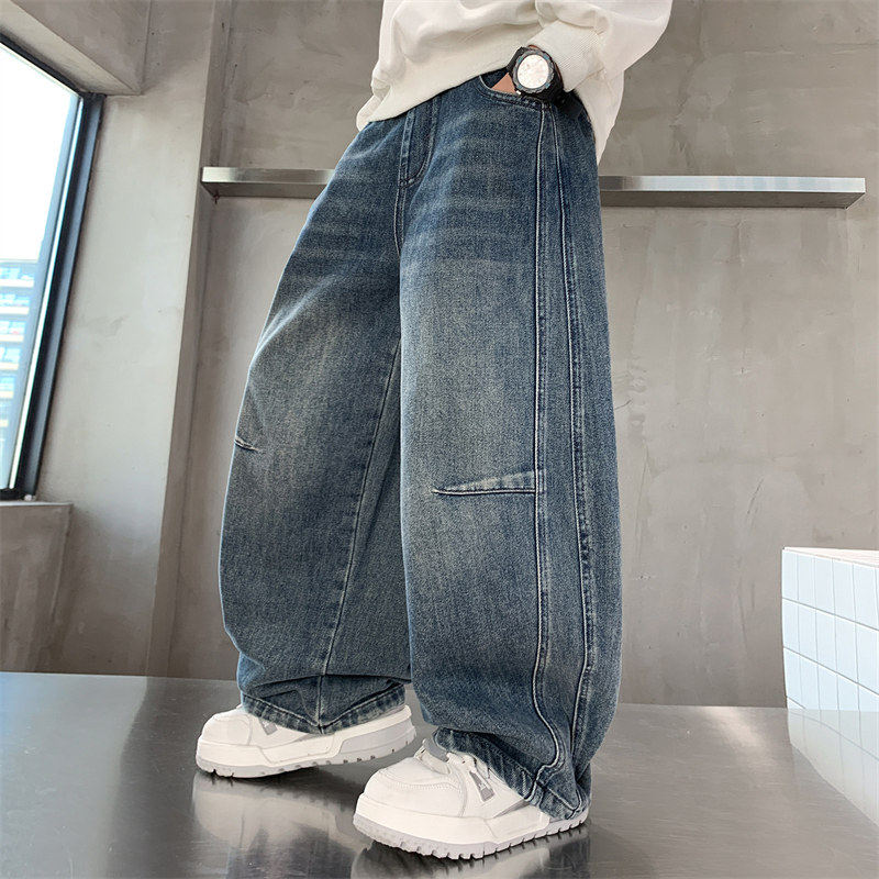 男童裤子春秋款2026新款加绒加厚牛仔长裤阔腿中大儿童冬装弯刀裤