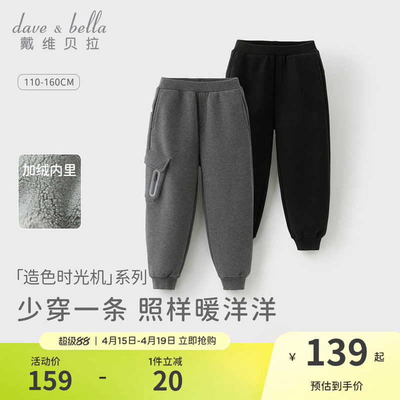 戴维贝拉男童加绒运动裤儿童加厚裤子男孩休闲裤卫裤2026冬装新款