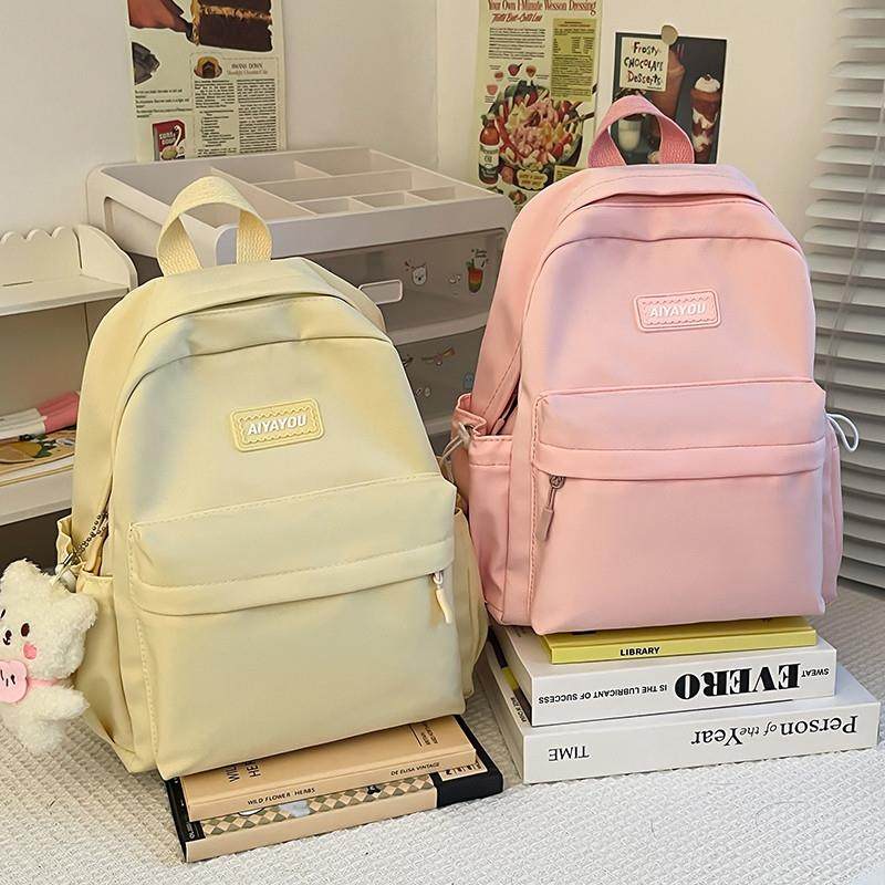 日系ins纯色简约小背包 高颜值校园轻便初高中学生书包百搭双肩包