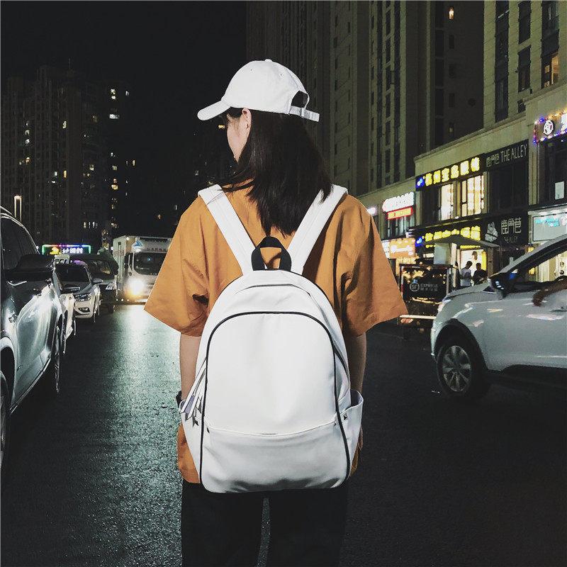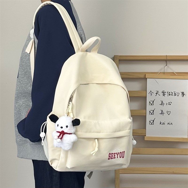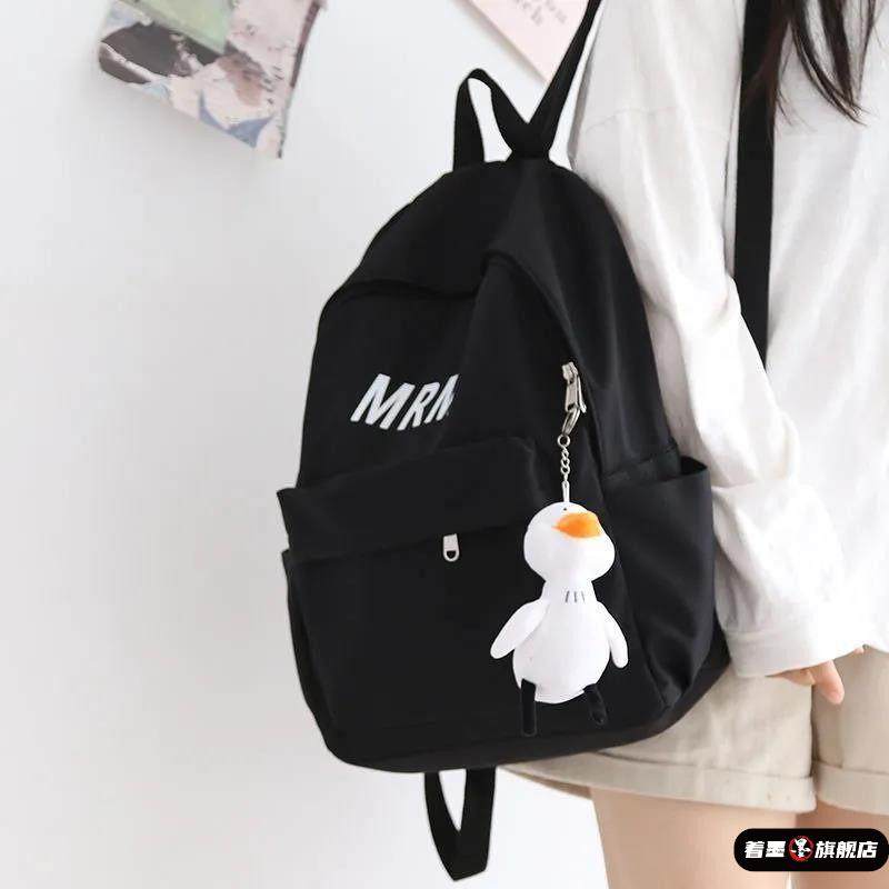 日系百搭高中生大学生简约书包女轻便背包ins校园新款纯色双肩包
