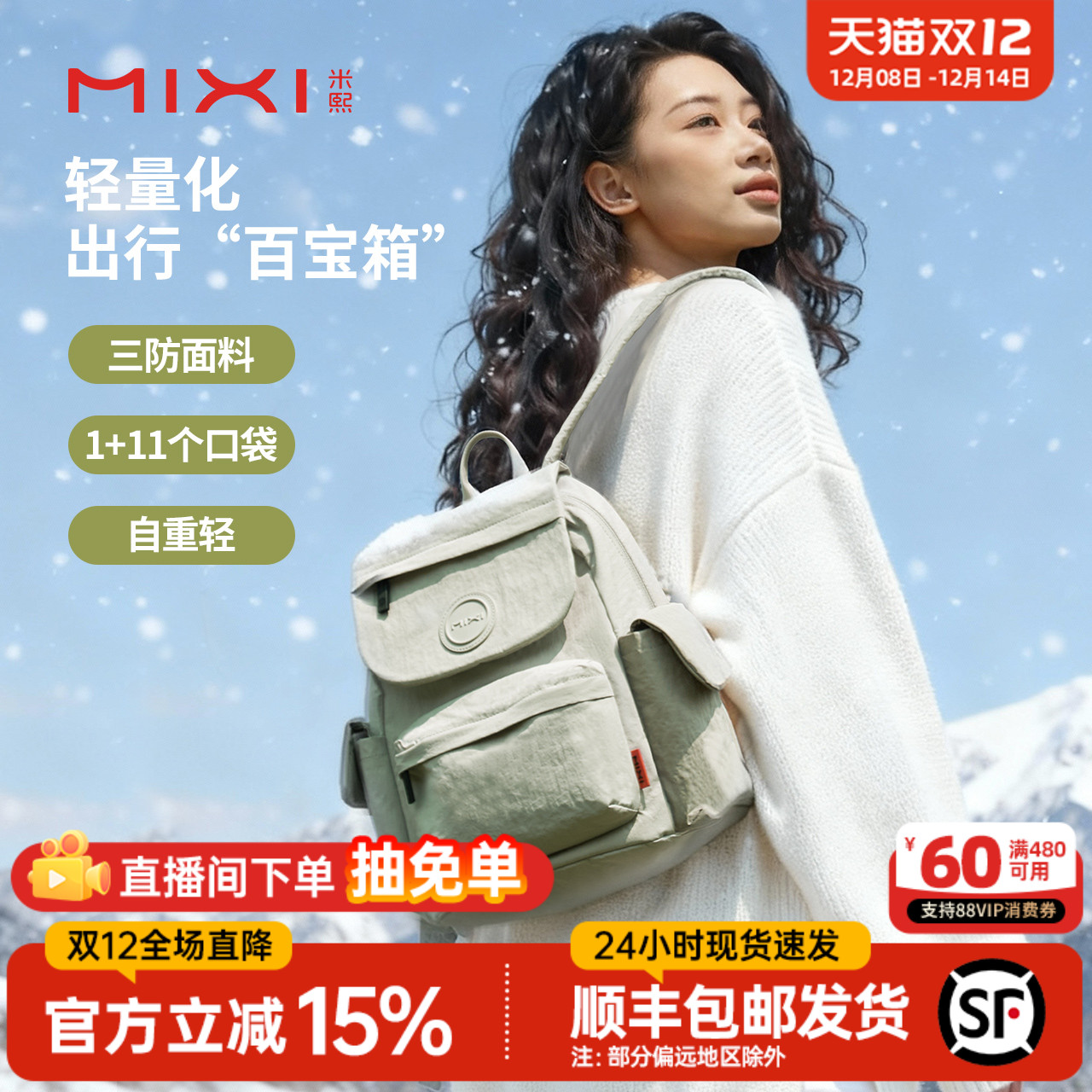 米熙2025新款轻便双肩包女旅游防水户外大容量电脑旅行背包小书包