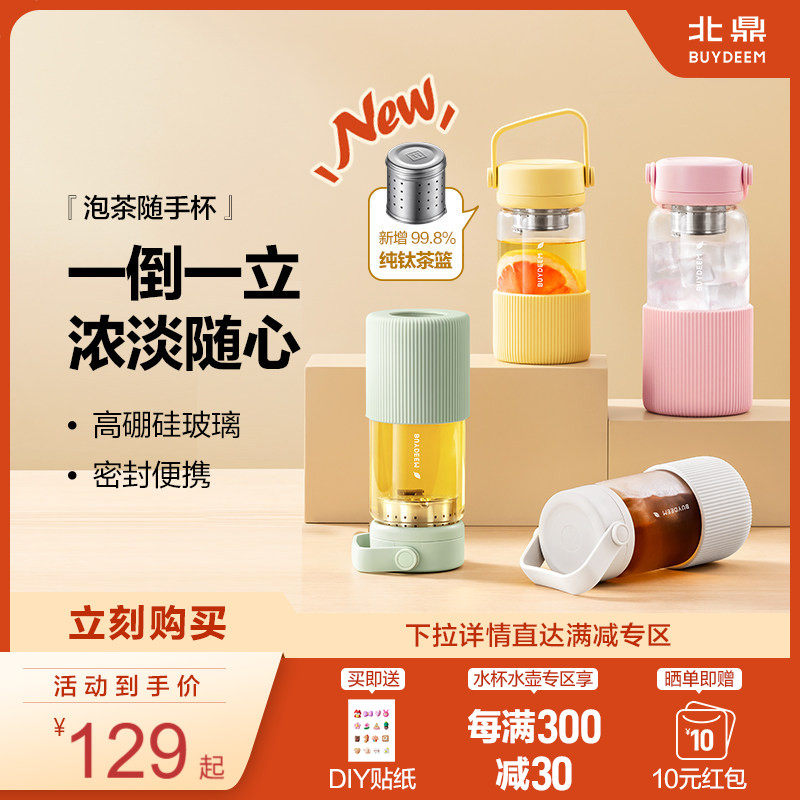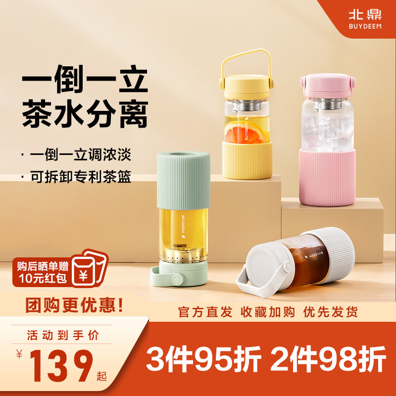 北鼎泡茶杯子玻璃杯水杯女茶水分离大容量高颜值耐高温便携随手杯