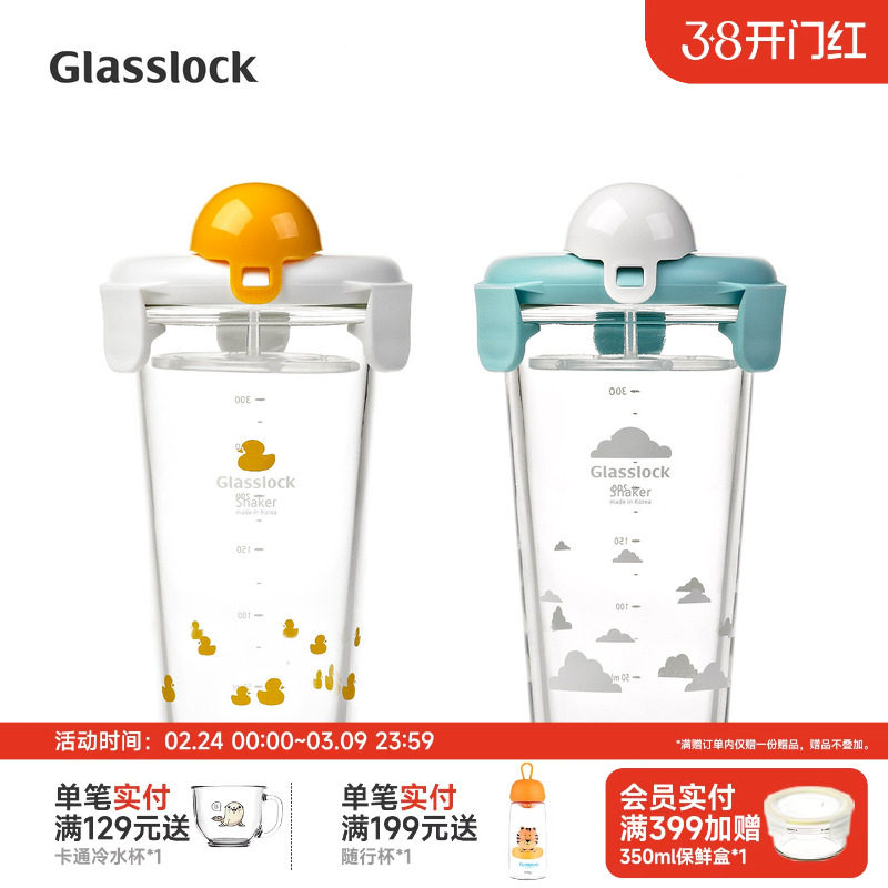 Glasslock盖朗玻璃杯子随手杯韩国清新可爱创意水杯便携茶杯女
