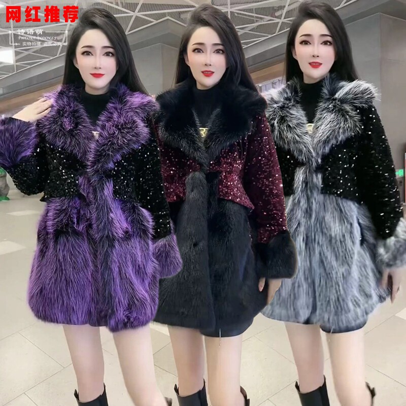 - 狐狸毛领羊绒大衣女 中长款