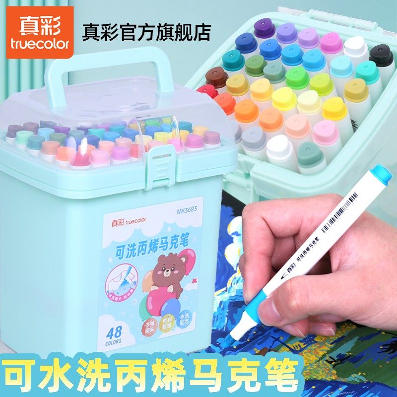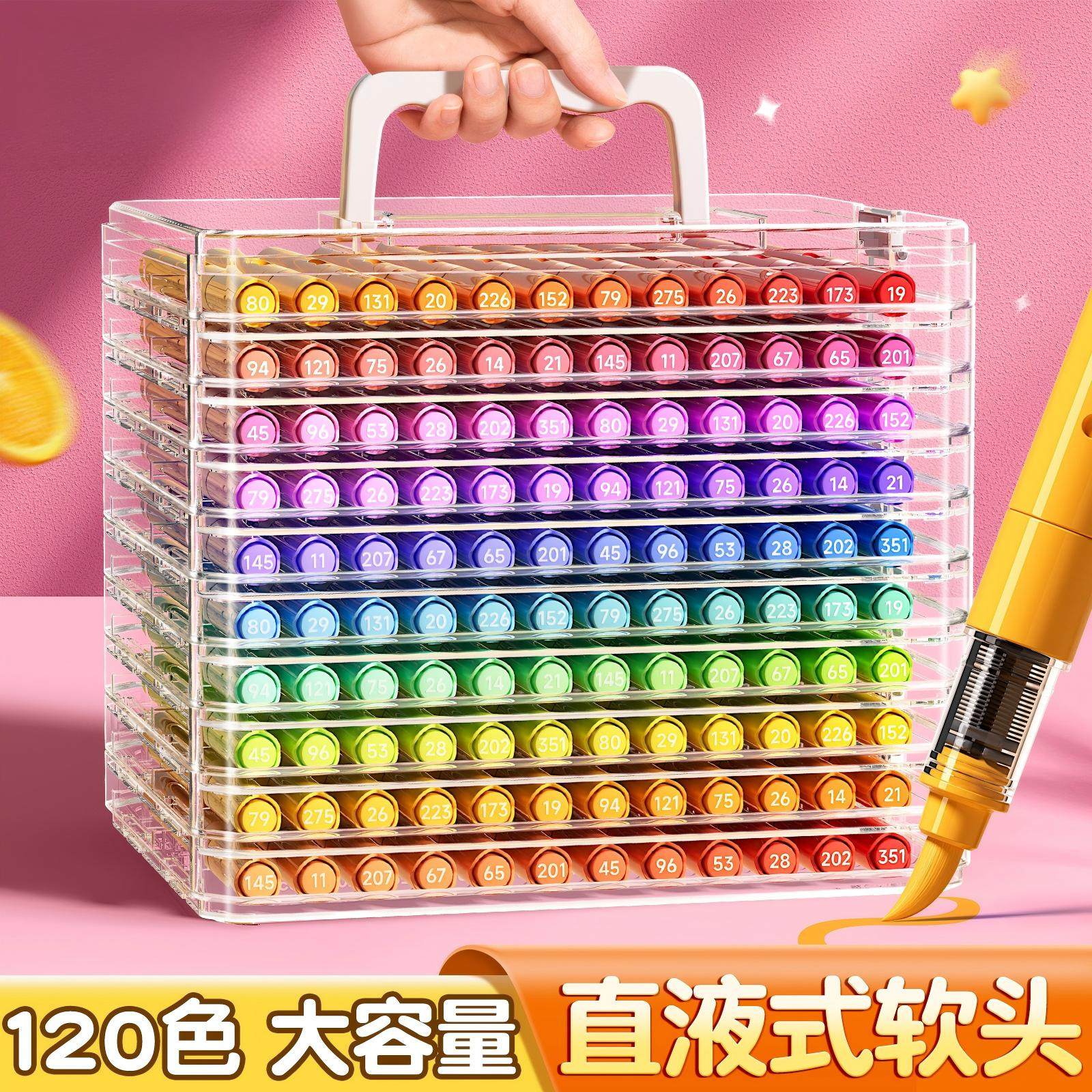 120色直液式丙烯马克笔软头水彩笔小学生美术专用画画笔高颜值幼儿园儿童专用可水洗无毒涂鸦色笔芯24色全套