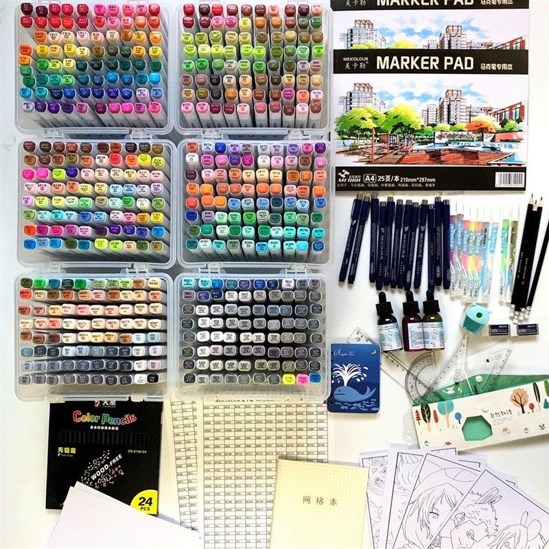 美卡勒马克笔全套色480色绘画笔双头笔专业套装盒装硬头软头酒精