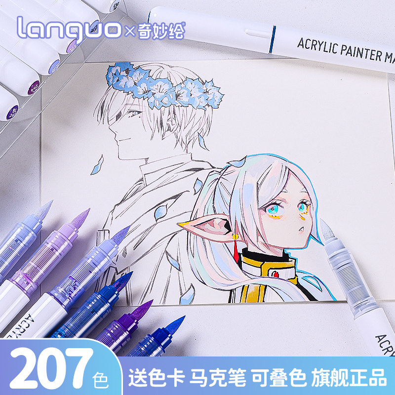 蓝果207色新一代直液式丙烯马克笔软头全套绘画专用81色学生肤色不透色小学生美术专用可叠色智能控墨48色