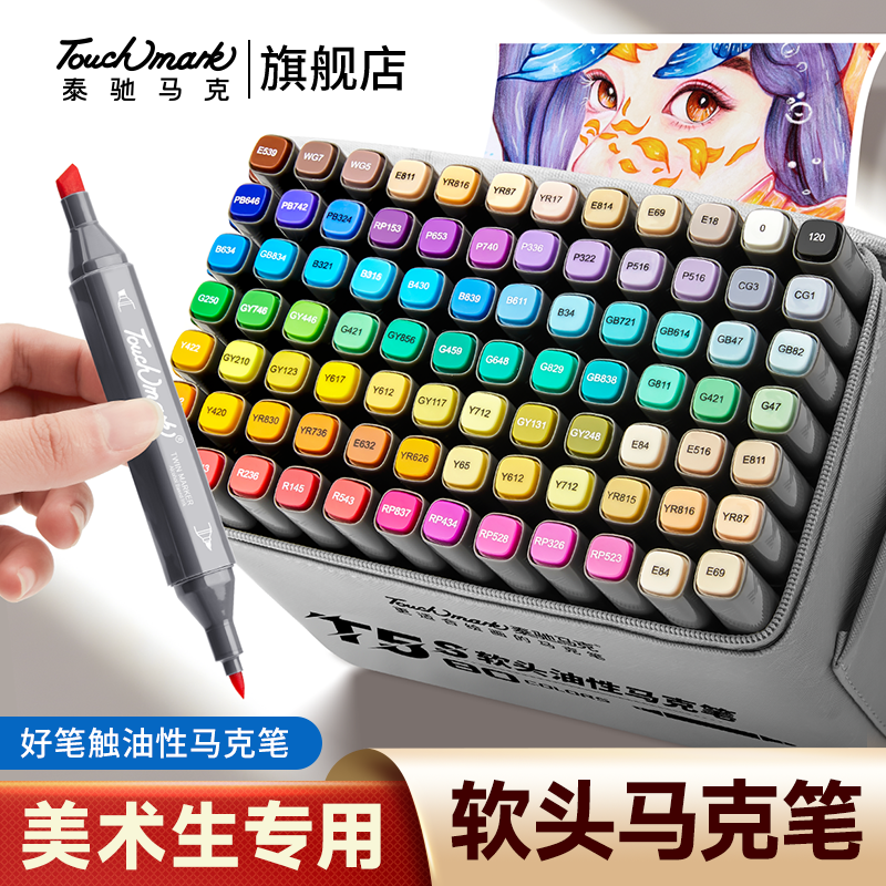 泰驰Touchmark软头油性马克笔全套学生专业美术专用动漫服装80色酒精油性双头艺考画画笔彩色笔手绘颜色笔