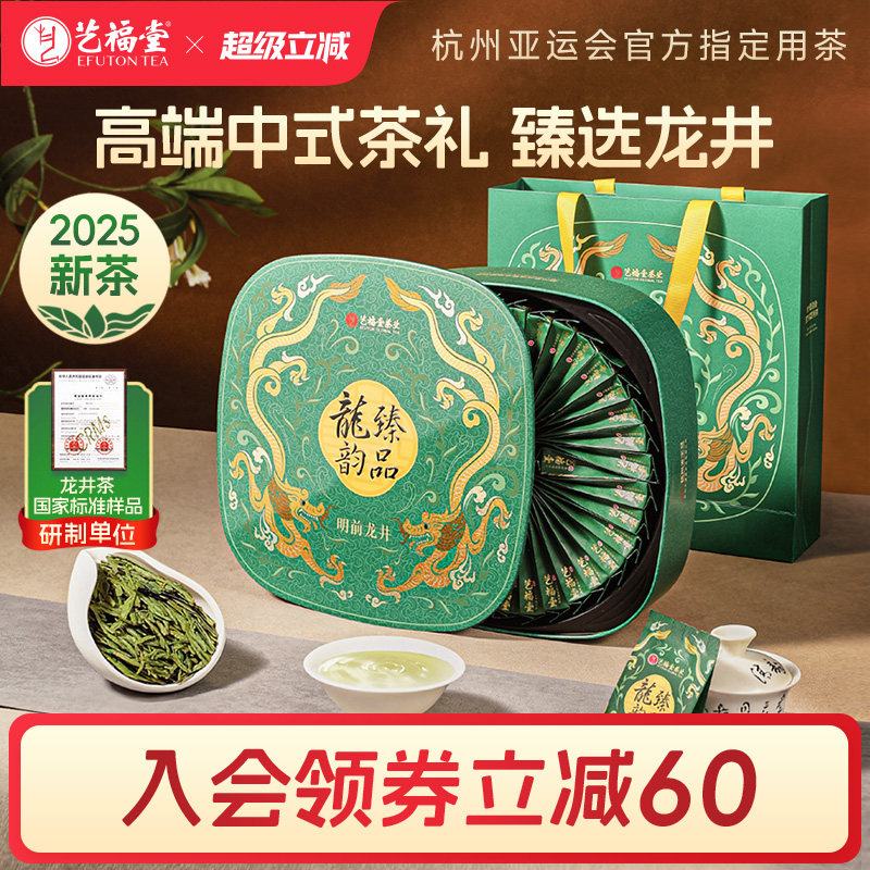 2025新茶上市艺福堂明前特级臻品龙韵龙井茶礼盒装120g绿茶叶送礼