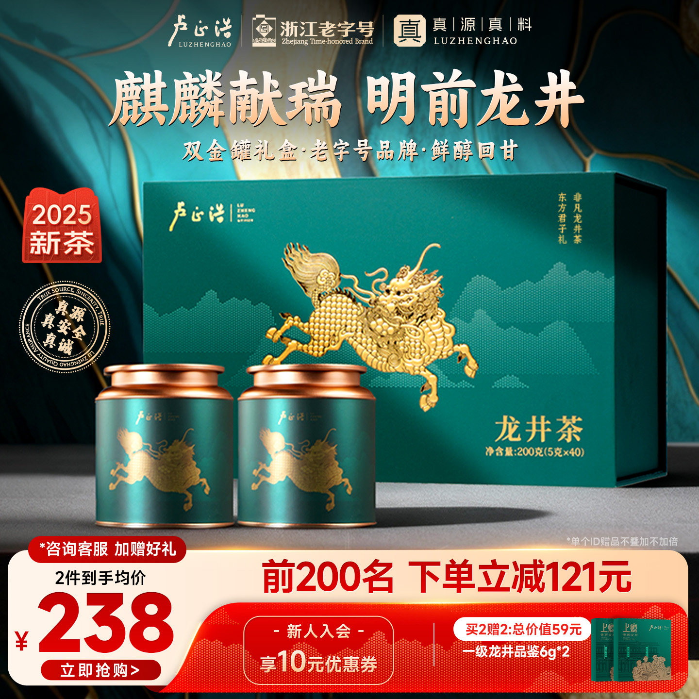 2025年新茶卢正浩明前龙井茶礼盒绿茶高端送礼茶叶200g节日送长辈