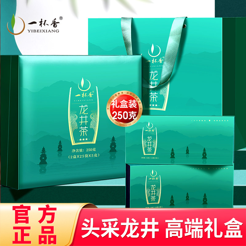 一杯香明前龙井茶礼盒装250g茶叶绿茶浓香年货礼盒正品官方旗舰店