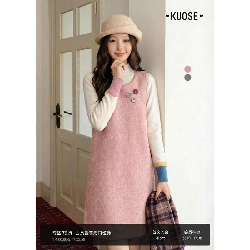 阔色粉色新年氛围感穿搭背心裙短裙女25秋冬季新款毛呢连衣裙子春