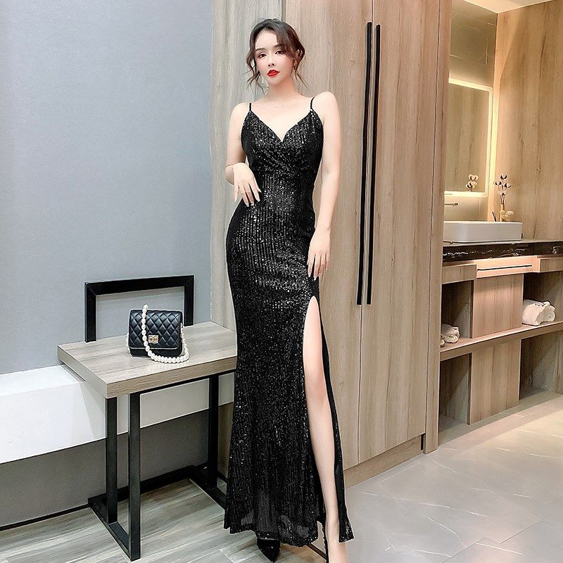 晚礼服女秋冬季气质名媛宴会长袖高级感亮片亮闪闪修身长款连衣裙