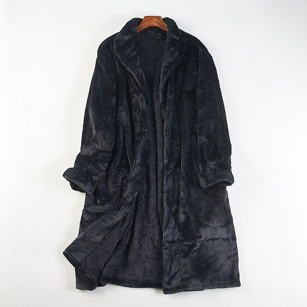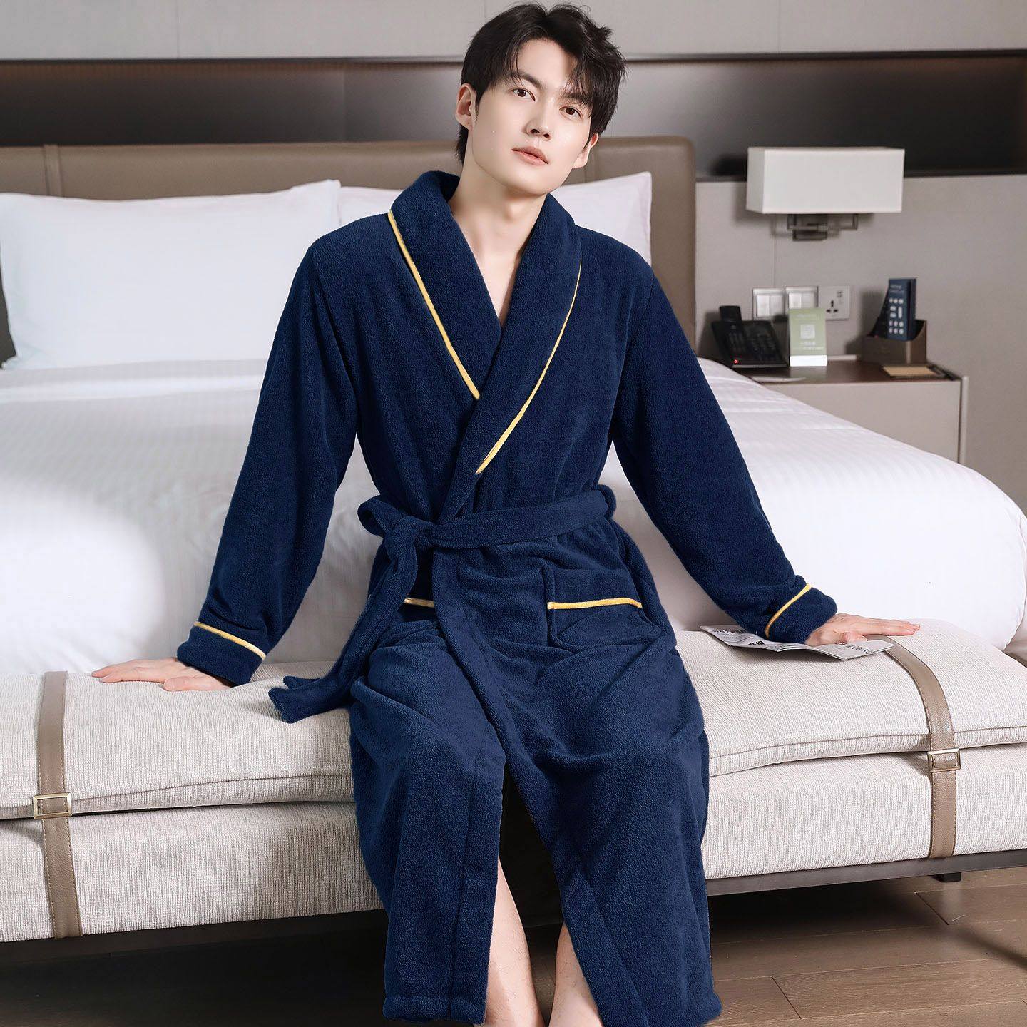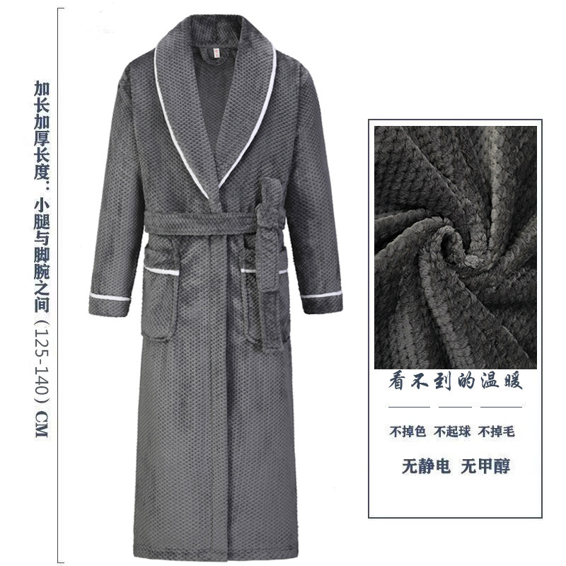 中长款加绒法兰绒睡袍男秋冬季浴袍男士珊瑚绒加厚保暖颗粒绒睡衣