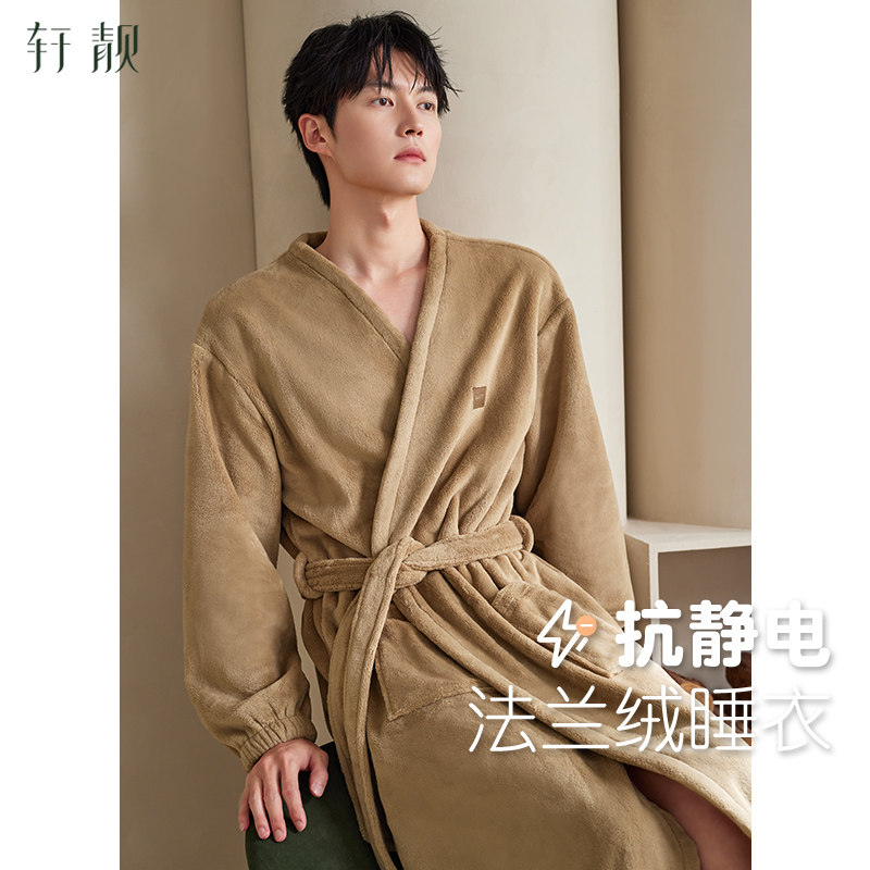 轩靓【抗静电】法兰绒睡袍男士秋冬季加绒加厚保暖珊瑚绒睡衣浴袍