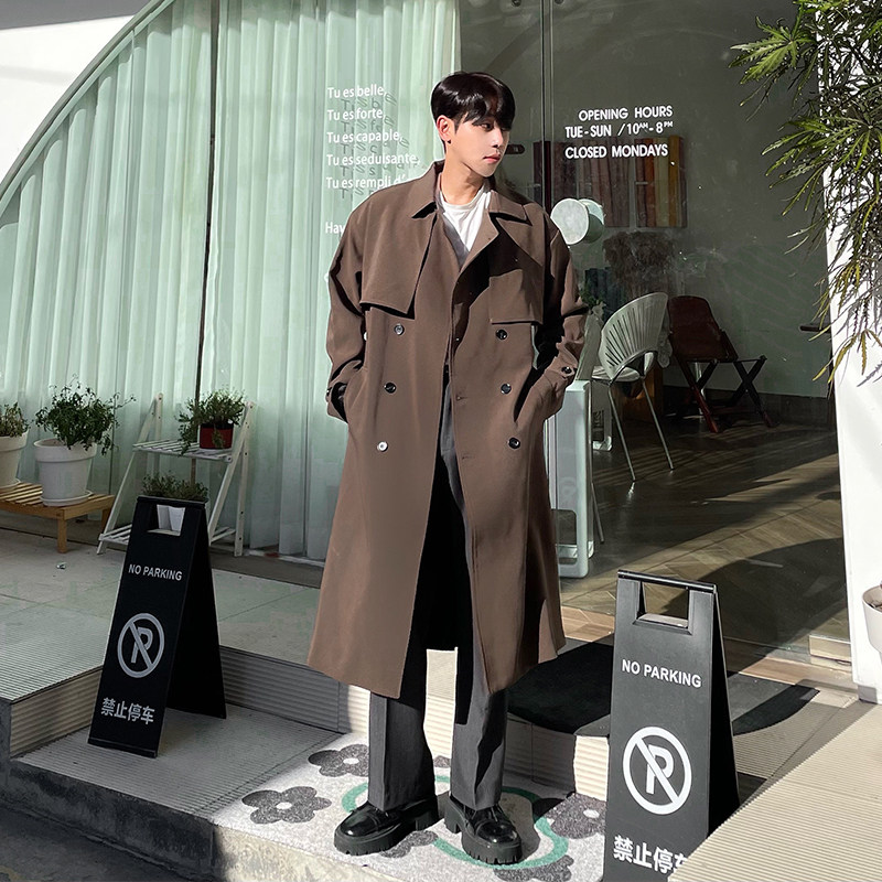 韩国风衣男中长款过膝韩版宽松英伦双排扣外套秋冬季加厚潮流大衣