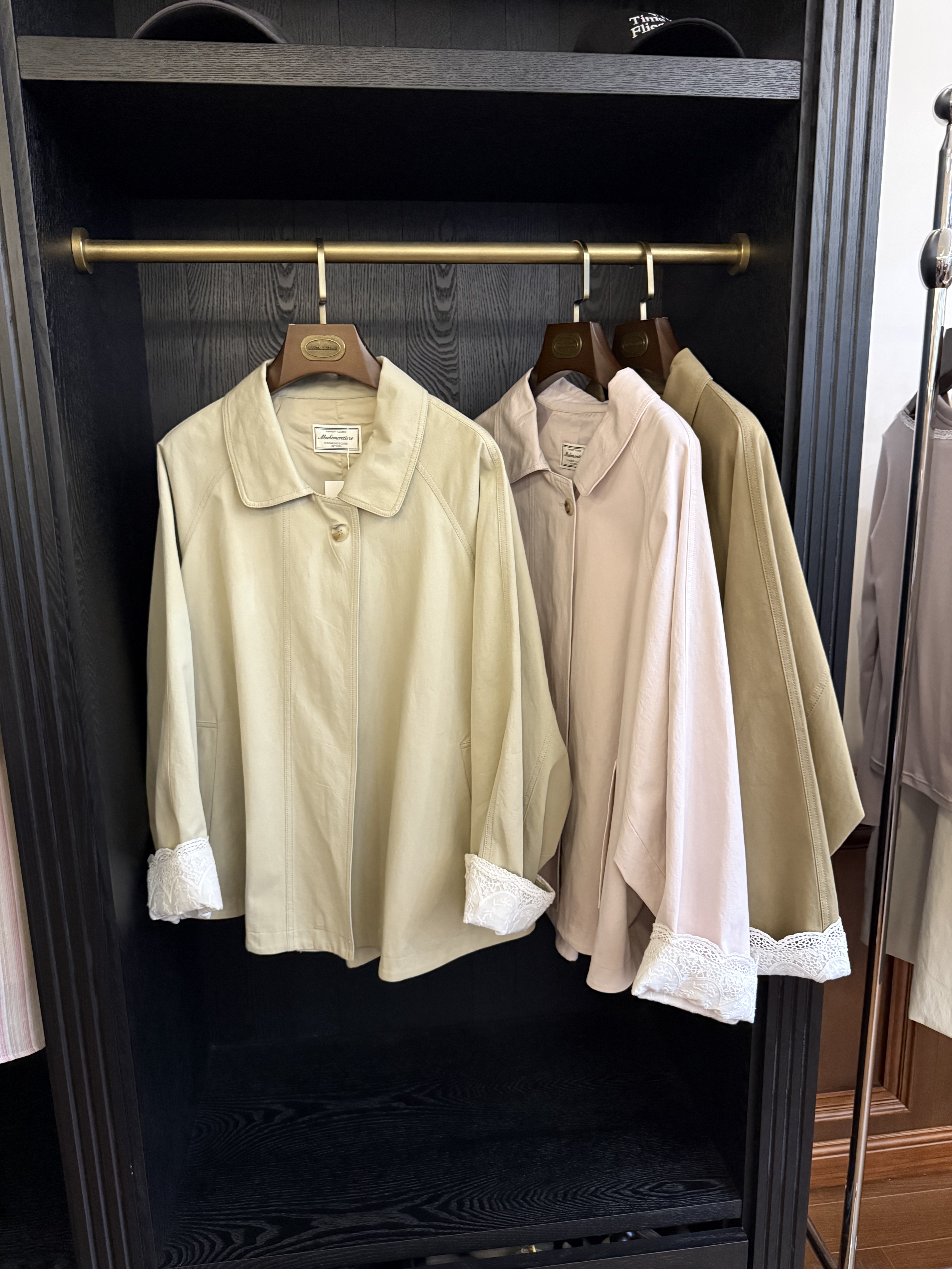 韩国make时尚高级感宽松显瘦甜美风袖口蕾丝设计斗篷风衣外套大衣