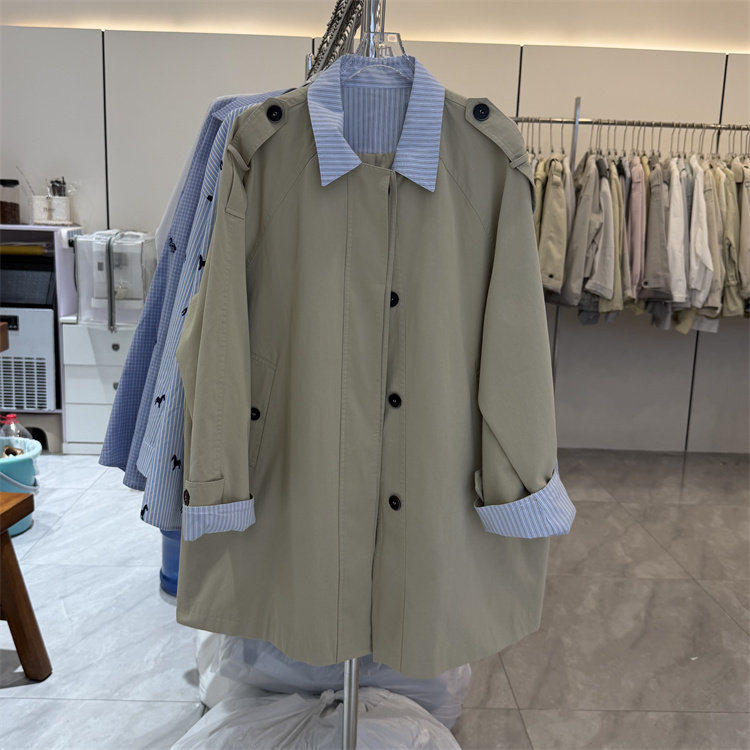 - 风衣中款外套女修身
