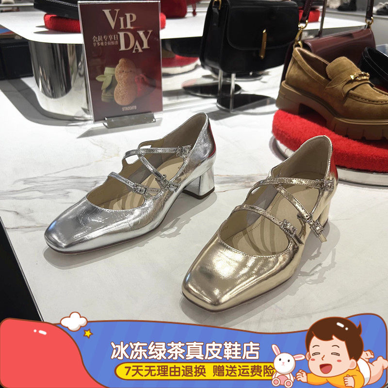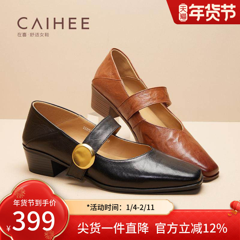 在喜2025新款粗跟玛丽珍鞋配裙子一字带浅口复古女单鞋Z33751049
