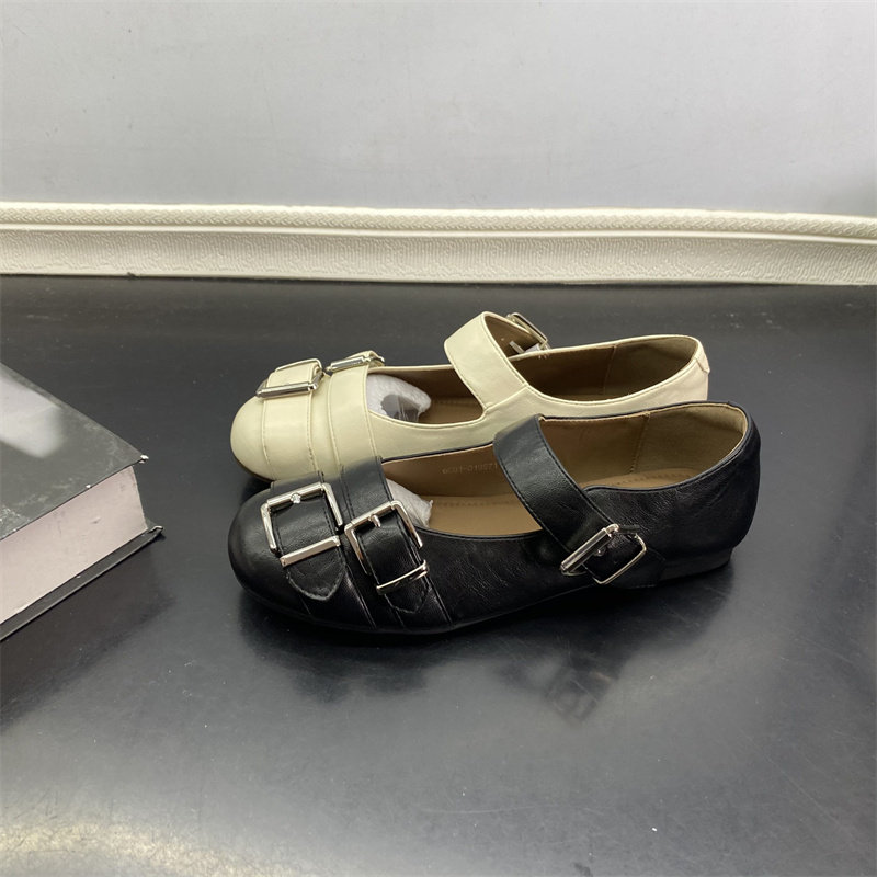 新款羊皮圆头微褶芭蕾鞋低跟复古女单鞋软底玛丽珍鞋真皮奶奶鞋潮